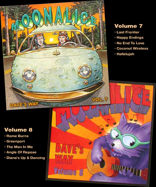 Dave's Way Volumes 7 & 8 Are Here!! According to Moonalice legend, the wait is over! We are proud to offer the latest installments in our famed EP CD series, Dave's Way Volumes 7 & 8. Ten stellar studio tracks including recent set list staples Rome Burns, The Man In Me, Hallelujah andCoconut Wireless, which was featured on the hit TV show, Sons Of Anarchy.